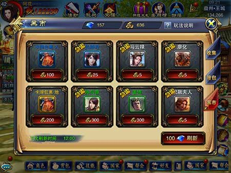 卡牌的获得可以去进行名将试炼,还有个途径就是黑市进行购买卡牌。黑市在卡牌的栏目里,不注意时都不会发现的。在黑市里面可以进行购买卡牌,购买卡牌所用的货币不是钻石,就是传说中的虎符!玩家可以使用虎符进行购买自己所需要的卡牌或是卡牌包裹,想买什么,任君高兴!