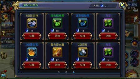 每次挑战成功系统都会送一定数量的灵羽作为奖励。闯天关中有一个黑市系统,黑市当中都是我们必要的一些日常材料,包括皮革,原石,宝石,韬略果实和豪杰酒,物品种类十分的丰富,大家如果有缺少的话,可以来这个地方进行换取。此外,我们还可以用灵羽在黑市中够买一些稀有的道具,例如:3级黄金宝石,3级红宝石,3级炼星石等平时很难获得的材料。