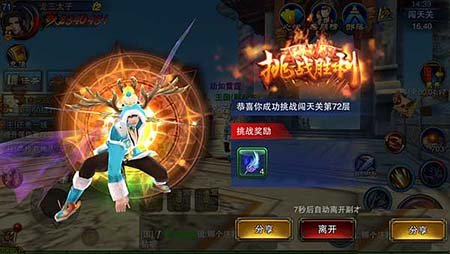 闯天关中每一层有一个BOSS,击败BOSS就算挑战成功。整个关卡挑战都是在很轻松的环境下进行的,没有其余烦人的小怪,我们可以专心对付BOSS。值得注意的是,每层关卡有时间限制,在规定的时限之内击败BOSS才算通关。