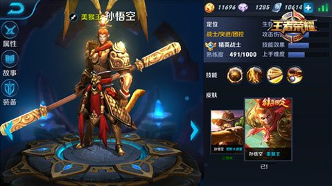 孙悟空在游戏中的地位为战士/突进/团控。孙悟空的攻击伤害,生存能力,技能效果,上手难度都为中等,而孙悟空的主要输出来自附带被动效果的普攻,在前期附带被动效果的普攻可以打出上千的伤害,接近脆皮1/2的血量。这也是孙悟空在各个分段上场率高的原因。
