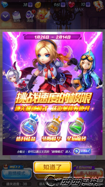 通关任意极速模式5次,送晶蓝王冠(碎片)*1;