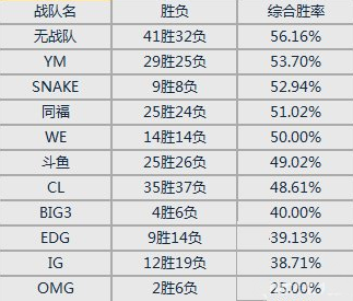 综合胜率最高竟然是无战队的选手们?