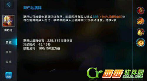 斯巴达盾阵(大招):斯巴达召唤勇士英灵环绕自己,对周围所有敌人造成物理伤害并将敌人击飞减速