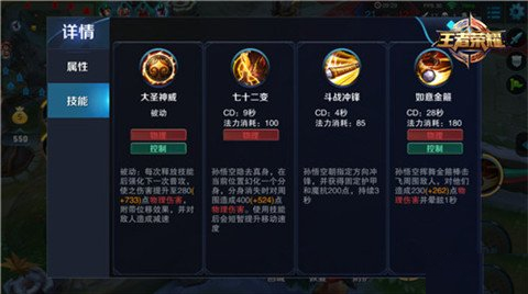 悟空的主动伤害技能其实仅仅只有一个3技能,且伤害一般,能让悟空称霸一方的全要归功于被动技能的“大圣神威”:每次释放技能后强化下一次普通攻击(ps.被动不可叠加,但会触发武器的攻击特效),使其伤害得到大量提升,附带位移,减速效果。