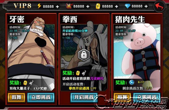 挑战虚化六车拳西玩家都将获得丰厚的奖励: