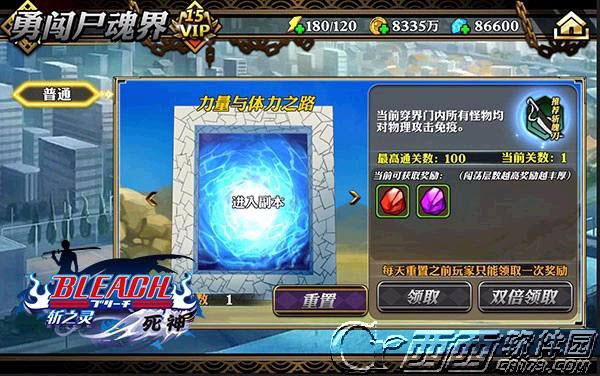 如若战况不利导致闯关失败,系统也提供复活功能,并且每次复活会为玩家带来10%全属性的提升!帮助玩家顺畅闯关!获取战利品!如若闯关失败且未进行原地复活,也无需气馁,可以再次进入继续挑战进度或者重置后重新开始闯关!除此之外,系统每天会赠送一次重置勇创尸魂界的机会!同时,VIp5以上玩家每日会额外增加一次重置机会。