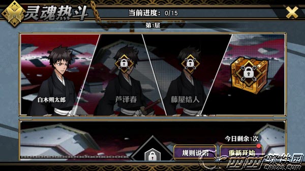 TIPS:每过一个关卡,若战斗胜利,为破损的斩魄刀恢复10%的灵压,若战斗失败,则破损的斩魄刀无法获得灵压的恢复,玩家情谨慎选择斩魄刀来进行挑战灵魂热斗!