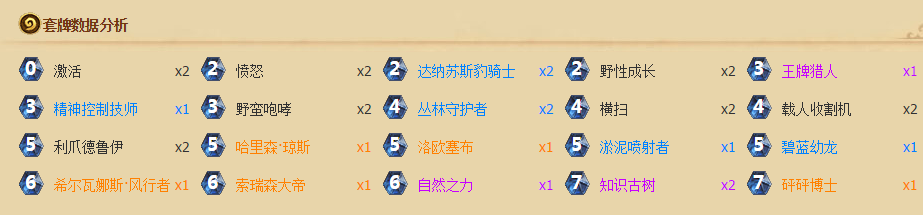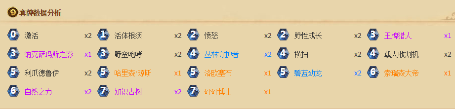 CLTotti使用了一套咆哮德,特点是带了两个活力根须,放弃了达纳苏斯豹骑士,并加入双蓝龙加强过牌能力。