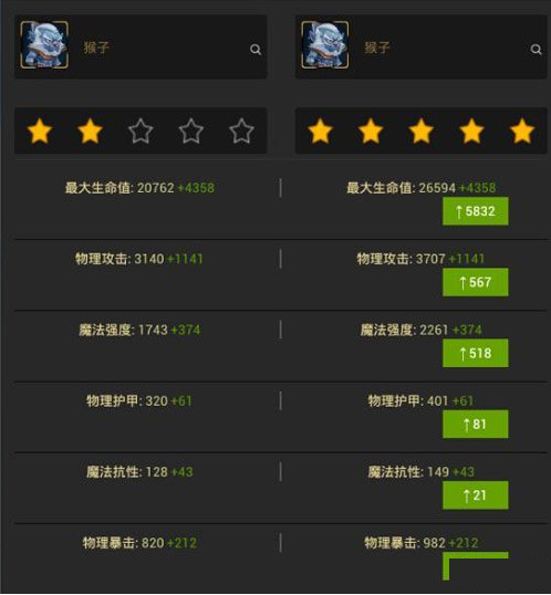 ①猴子的觉醒装备增加敏捷、最大生命值、魔抗和攻击,半输出属性和半防御属性。让猴子的输出生存都有一定的提升。