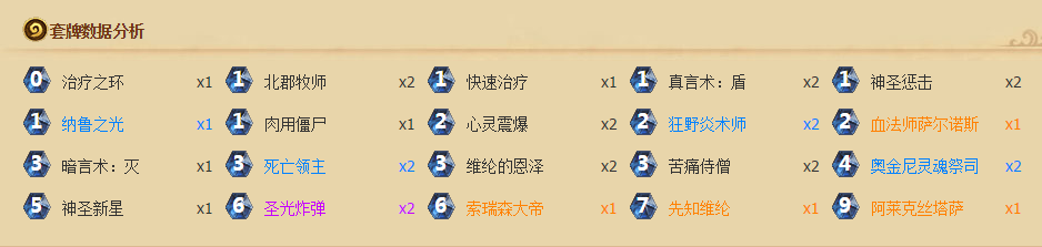 这套牌并不是那种很出众的,能让你一飞冲天的套牌。但是至少它能让我安心地打出金色牧师头像,我希望你们也能对这种别样风格的牧师感兴趣。感谢阅读!