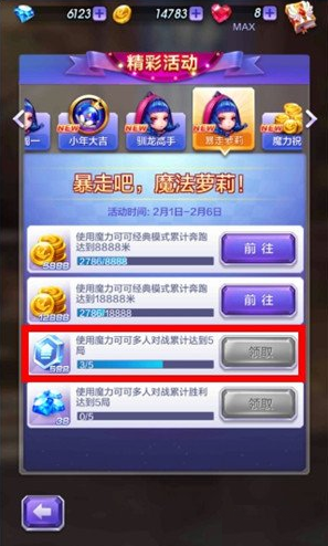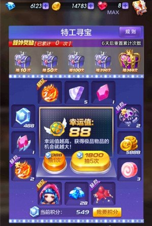 玩《天天酷跑3D》老特工肯定会知道在多人对战中有个抽奖的系统。这个抽奖的系统叫做特工寻宝,在奖项中有一个就是获取积分488。但是,代价就是先花去388的积分。这样看着是有点的不值得。不要紧,考虑到玩家的经济实力系统每天都会有赠送的免费抽奖机会。不过能不能抽到就看玩家的运气了。