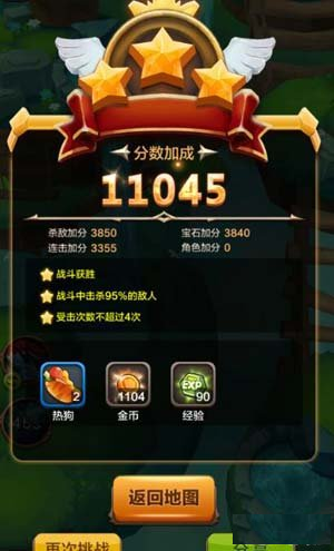 经过BOSS的以上两种攻击方式,后面就比较简单了,放一波大招,就可以妥妥的拿到三星了。