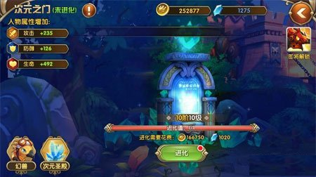 ③次元之门——次元之门需要消耗光能和金币进行充能,每提升一个阶段都会给宠物附加一定的属性值从而增加战斗力,次元之门进化后还会解锁新的宠物。