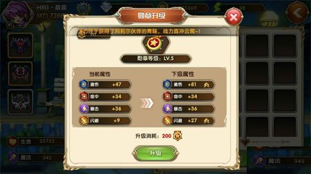 5.勋章:别忘了这个东西!点开装备页面,人物脑袋上方的那个勋章可以增加属性的,竞技场段位赛每天前五次获得的奖励就是用来升级这个勋章的,增加战力还不错。