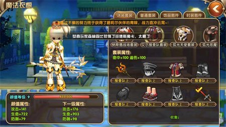 4.时装:时装是增加战力的主要功能,别忘记了去衣橱里面激活时装增加颜值等级!很多人也说时装难获得,其实不然,去打boss副本,里面的箱子就有几率爆出来时装,打了没爆?退出重来,反正你又不会损失什么。