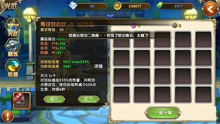 1.光武:光武前期不用强化太多次,然后就是橙色的光武千万不要手贱拿去卖了。分解>精炼这个要记住,橙色光武分解之后可以获得紫色强化石,那是后期光武强化必备的东西之一。至于精炼,强化没达到你理想要求之前没必要搞,增加属性太少!