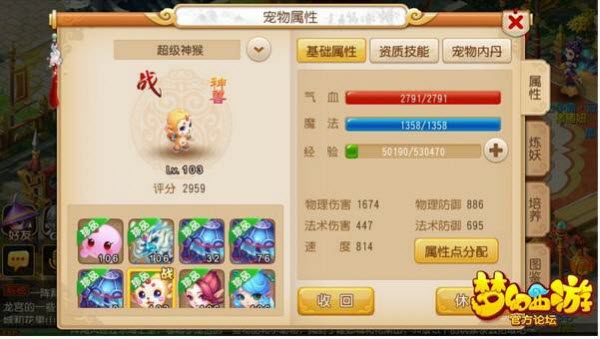 如果大家选择跟我一样上本高隐身、高神,我推荐大家4力1敏加,或者先全力加,然后等力量加到大于等级*4的时候在全加敏捷,如果选择高必杀、高神,那就不一样了,推荐4力1体,或者全力加,加到力量大于等级*4的时候在全加体质,召唤兽宝宝在升级的时候是自己会增加各方面体质的哦,小编在这里推荐先别加点,等等级升到了在一起加。