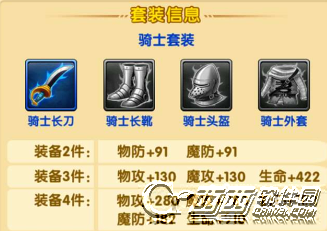 4件效果:物攻+280,魔攻+280,物防+182,魔防+182,生命+910