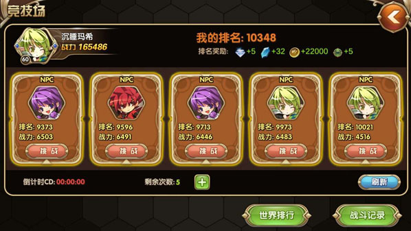 第三,除非对战力很有自信,不然刷出的对手中,有玩家的时候不要打NPC,原因就是打玩家有几率失败,失败后还会有冷却时间的限制,但是打NPC就很容易。