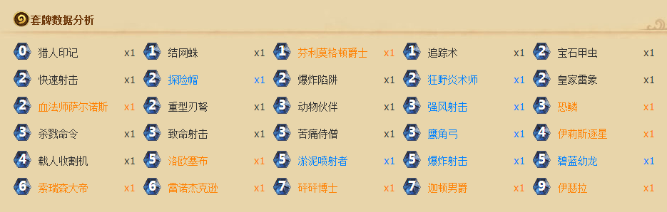 优势对阵:德鲁伊、动物园、奴隶战、冰法、节奏法、快攻萨、盗贼、T7猎、中速骑、中速猎、神恩骑