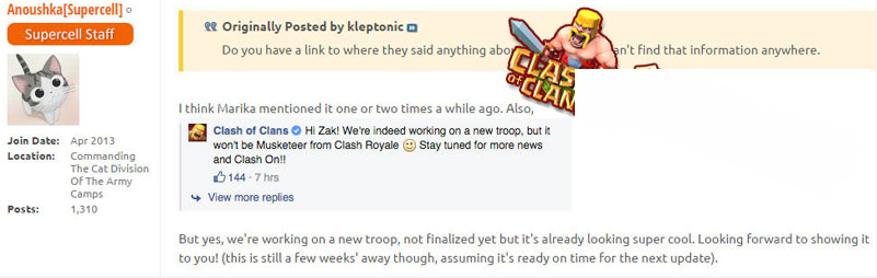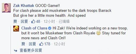 1、将有新兵种(new troop)出现,而且确定不是《Clash Royale》里的火枪手(Musketeer)。