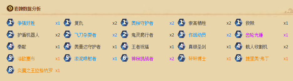 新冒险“探险家协会”也即将走到新鲜感周期的尾声,环境已经没有太多的改变,新卡之中的套路以及哪些卡牌是高效可取的早被诸多玩家研发透彻。我们讨论套牌强度的排名总是要考虑到以下的因素:套牌出现频率、上手容易程度、环境天敌数量(非技术因素的克制)、对阵多数套牌的胜率一致性。