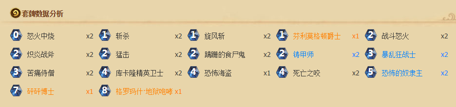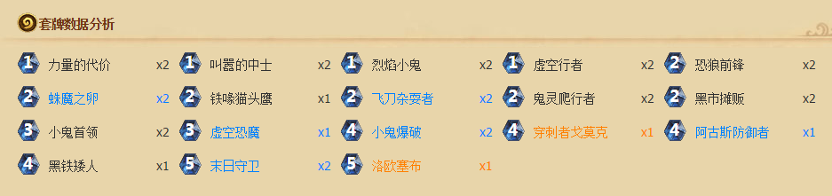 换牌策略:布莱恩·铜须 - 虚空恐魔、阿古斯防御者 - 恐狼先锋(你可以自由调整,也可以考虑投入海巨人)