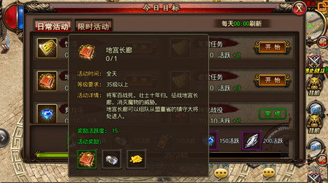 地宫长廊每天可以完成一次,可以获得15点活跃度!