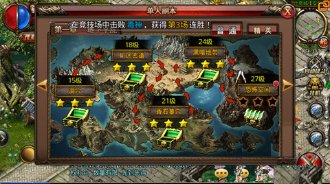 通过【活动】→【战役】可以进阶单人副本界面,我们可以根据自己当前的等级来选择副本,由于每天的体力是有限的,所以我们要尽可能推到自己所能达到的最高等级的副本!