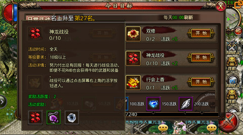 神龙战役每完成一次能够获得2点活跃,总计10次20点活跃度!