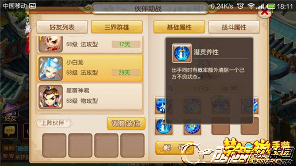 2.小白龙。出于综合考虑在竞技中对方玩家的助战配置,避免一切进战斗没打三回合,自己这一方都被封出了奥运五环状况。小白龙就是灵丹妙药了,小白龙拥有滋灵养性这个技能,而且小白龙的面伤效果也可以,所以对想避免“奥运五环”的玩家来说,小白龙是一个不错的选择。