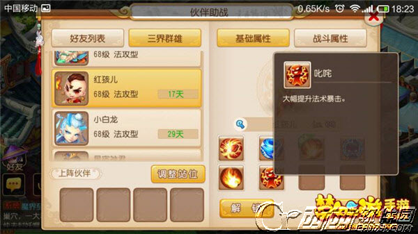 3.红孩儿。红孩儿特色在于爆发,他的法术暴击能力能够助玩家起飞,同时红孩儿的法术输出会降低目标的物理和法术防御,这个技能就更能体现出红孩儿配合爆发输出的特色,法爆一次或许会有额外的惊喜喔~