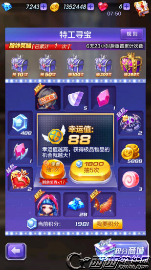 1、幸运值越高,获得稀有物品的机会越大,因此抽的越多,寻到宝物的几率也就越高。