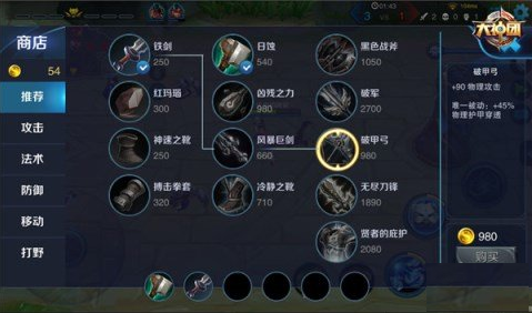 兰陵王出门装铁剑是可以提高兰陵王前期的输出能力,让其在1v1单挑中输出更强,同时铁剑可以合成之后的核心装备,是非常重要的一个组件。红玛瑙则是提高兰陵王血量的前期强力装备,可以然兰陵王多承受住敌方的几次攻击,让兰陵王更好的进行输出。搭配的技能为防护,可以有效的配合兰陵王的大招隐袭进行躲避敌人的输出。