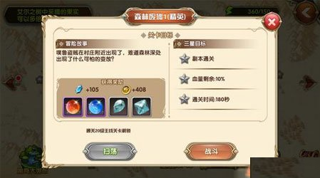 而精英副本必须三星通关某个限定关卡后会解锁!森林废墟1(精英)是必须三星通关普通副本森林废墟1之后才会解锁!