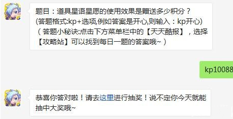 有玩家在论坛上问,在天天酷跑中,道具星语星愿的使用效果是赠送多少积分,坐骑小丑库卡的巨人时间是几秒,下面西西就为大家整理出了答案,希望能对大家有所帮助!