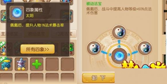 下面就是小编最喜欢的四象属性了。两仪选择三条阴不光是因为它们的加成好。更好的是因为想开出太阴四象属性,如下图: