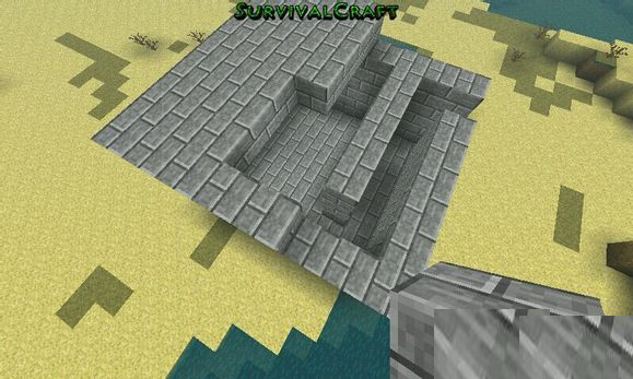 第二步,搭成这个样子,一定要宽点,大点,中间那个突出的是为了阻挡出口处的光(暗的地方刷怪嘛!)