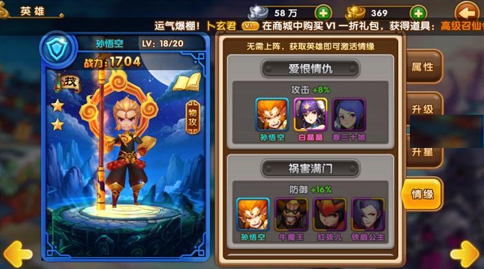 孙悟空+白晶晶+春十三娘:攻击+8%