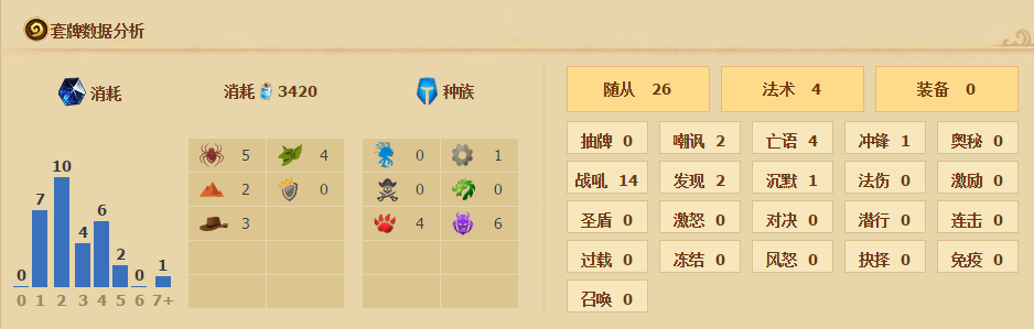 刚刚开始可以先上一个怪,防一下对面的豹骑士,配合历代蜘蛛蛋,或者叫嚣小蜘蛛都可以,打德只要咱们铺起来了他就稳输,尽量buff随从让他横扫不能一发全收,换怪时也要算算剩余血量,如果换完都是1血,还不如送掉一两个小的,zoo的随从质量比较低很怕aoe,所以时时刻刻要防,保持场面优势,有亡语随从,aoe了会让对手更加棘手。做到收益最大化,场面在就不怕。
