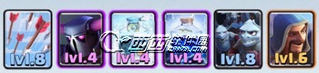 皮卡+箭雨+闪电+火球+冰冻+墓碑+法师+苍蝇群