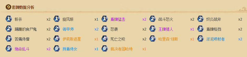 现今天梯主流的牌组生物数量有限(佛祖骑、雷克萨、奴隶战、火妖法),只要两张绝命乱斗运用得当,对方很容易打到没生物。