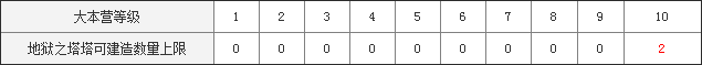 1、不同大本营等级下,地狱之塔可以建造的数量上限: