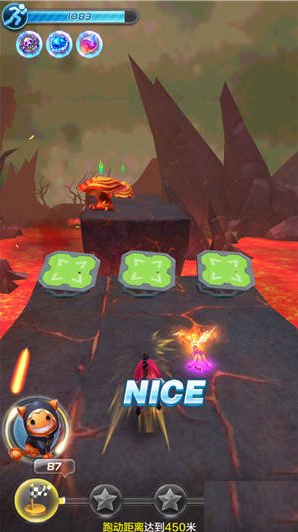 还有,玩家在绿色的垫子或者蘑菇上跳跃时,要注意控制落点。不能因判断失误导致落在障碍物上面,不过尽量跟着地面收集物移动,预判一定的风险,这样通关就不是很难了。