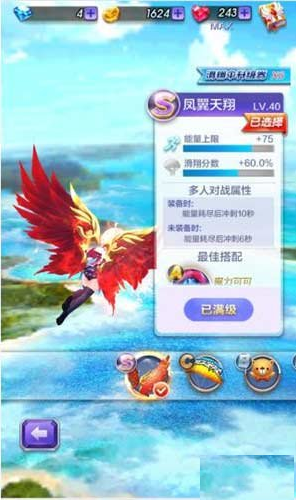 一般角色都会有自己专属的搭配滑翔伞。但是,目前还没有出魔女娜娜的专属滑翔伞,这种情况下我们可以选择魔力可可的最佳搭配S级滑翔伞“凤翼天翔”,S级滑翔伞的强大属性一定能帮助魔女娜娜在对战中拿到好分数的。