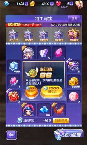 魔女娜娜的获取和其他的角色有所不同。需要玩家们在玩家寻宝中积分抽奖获取。