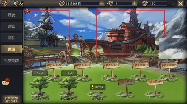 别墅——别墅的等级决定着可以种植的树木类型与快慢,也会限制家园其他建筑等级。别墅的等级通过等级来限制,银两来完成。