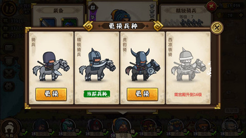 随着宫殿等级的提升,能够使用更多的兵种,如上图,在宫殿等级达到16级时,会解锁最后一种西凉铁骑;