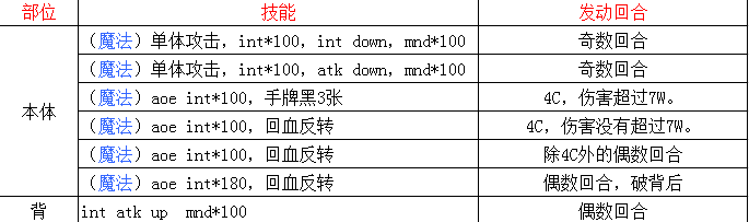 怪物技能表: