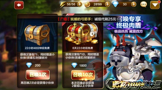 3、通过活动或任务(如每日累计充值300钻),可获得系统赠送的高级召唤石,可免费召唤10次!